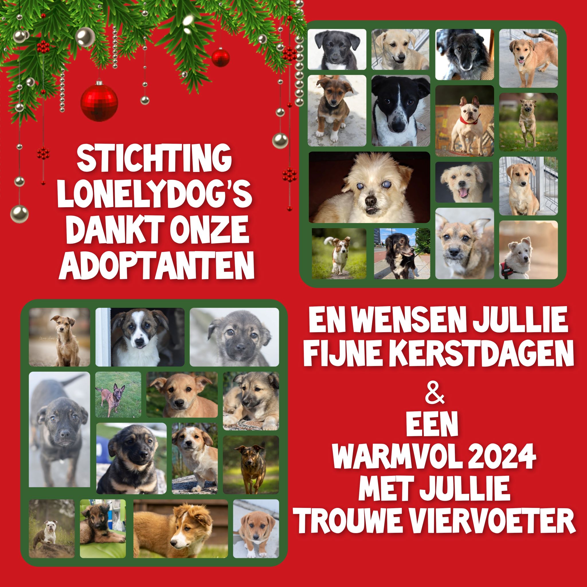 Stichting Lonely dog’s wil iedereen heel hartelijk danken, voor alle steun in welke vorm dan ook, die zij het afgelopen jaar mochten ontvangen! Wij vinden het ontzettend fijn dat alle geadopteerde honden een warm & liefdevol huis hebben gevonden en dat de adoptanten heel veel liefde terugkrijgen. Team Lonely dog’s